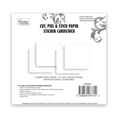 COUTURE CREATIONS CUT, PEEL & STICK PAPER STICKER CARDSTOCK 728922 WHITE